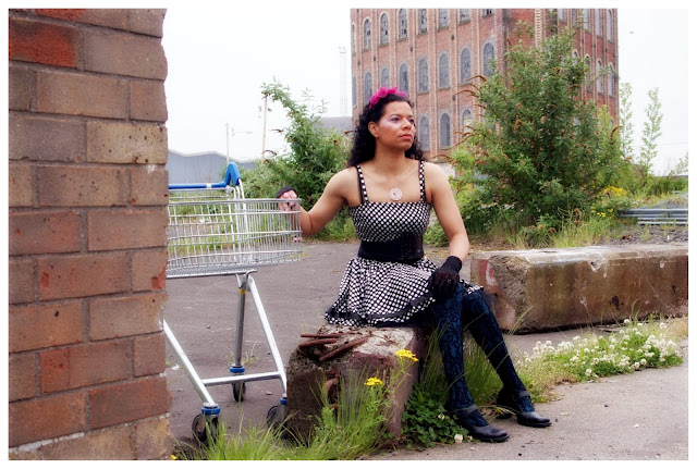 What a cute modern pin up girl look! So much fun! I especially love the fingerless gloves!